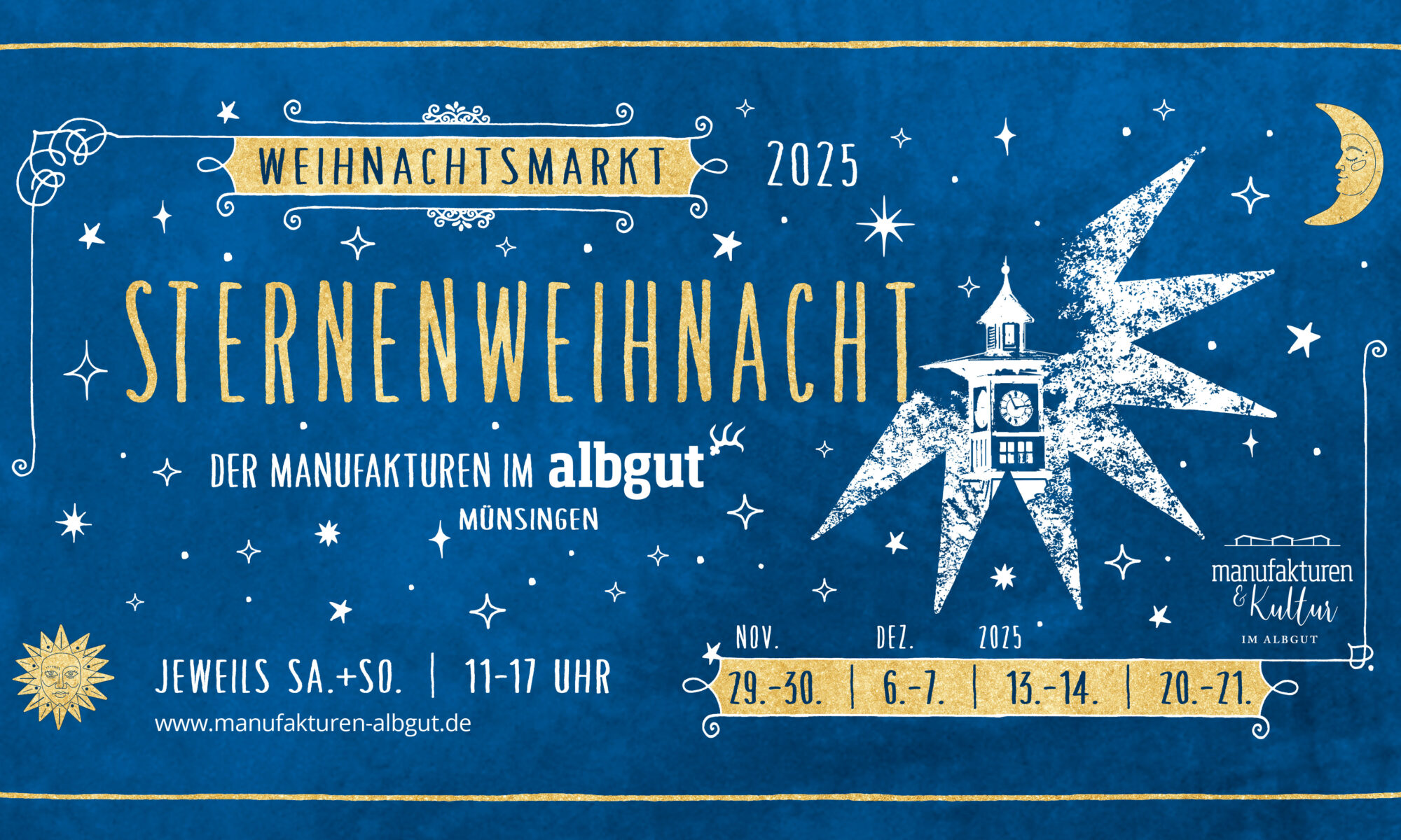 An den kommenden Adventswochenenden ist wieder Sternenweihnacht bei uns in den Manufakturen im albgut.